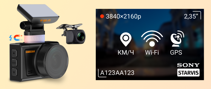 Новая модель двухкамерного видеорегистратора с быстросъёмным магнитным креплением, а также модулями Wi-Fi и GPS поступила в продажу!