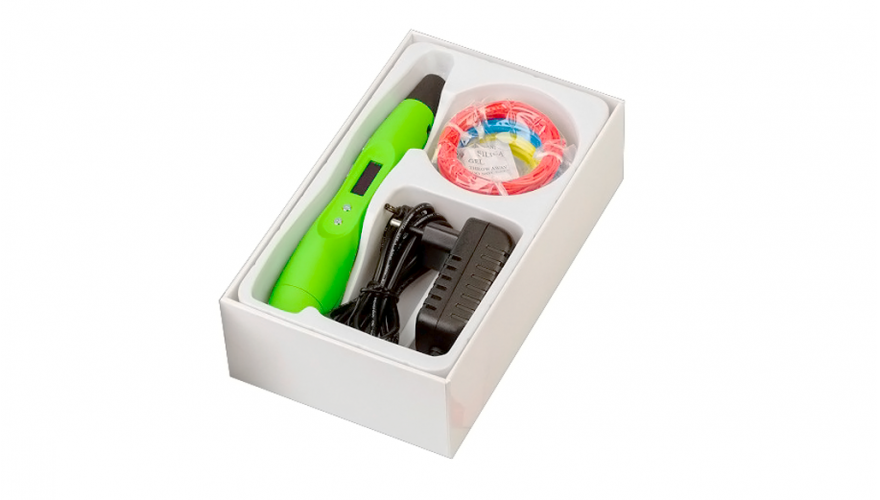 3D ручка, пробный набор пластика, блок питания, инструкция |