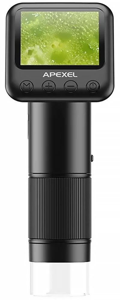 Apexel Digital Handheld Microscope (MS008) – это портативный цифровой микроскоп из ABS пластика и поликарбоната, который подходит для изучения биологии, геологии, энтомологии и других областей. С его помощью можно делать снимки и записывать видео высокого разрешения, чтобы документировать открытия. Обеспечивает чёткие изображения благодаря многослойным оптическим покрытиям. Каждая деталь становится видимой, что улучшает процесс наблюдения. Упрощённая фокусировка с более длинным рабочим расстоянием и широкой глубиной поля исключает необходимость в дополнительных стабилизирующих платформах. Регулируемое увеличение от 200 до 400 раз позволяет проникать глубоко в микрокосмос. Можно увидеть замысловатые узоры, текстуры и структуры самых мелких образцов. Имеется 2-дюймовый LED-экран с разрешением 320х240. Отличается от традиционного «окулярного» наблюдения, обеспечивает комфортное использование. Длительный просмотр не утомляет, защищает зрение. Благодаря встроенному аккумулятору емкостью 700 мАч микроскоп может работать без подзарядки около 2.5 часов. Для полной зарядки нужно примерно 2 часа и кабель USB Type-C, идущий в комплекте. Имеется поддержка карты TF ёмкостью 32 ГБ. В комплект поставки входит сам микроскоп, зарядный кабель USB Type-C, водонепроницаемый мешок для хранения, очищающая тканевая салфетка, инструкция.