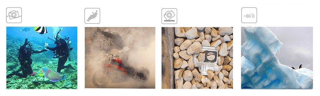 Бокс обладает степенью защиты IP68, что позволит вам погружаться с камерой под воду на глубину до 40 метров. Благодаря высококачественному пластику, бокс выдерживает воздействие как пресной, так и соленой воды