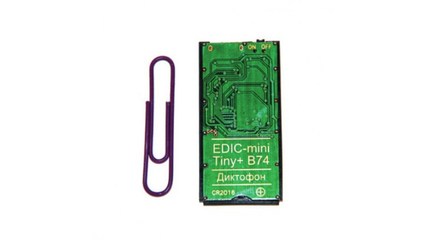 Edic-mini Tiny+ B74 – тонкий и компактный диктофонов, его толщина всего 4 мм. Корпус выполнен из алюминия и стеклопластика, поэтому не смотря на небольшие размеры, устройство прочное и надежное. При всей своей компактности, диктофон предназначен для профессиональной аудиозаписи и хорошо справляется со своей задачей в любой обстановке, будь то шумная улица или массовое мероприятие. Высокочувствительный микрофон позволяет вести запись на расстоянии до 12 метров.