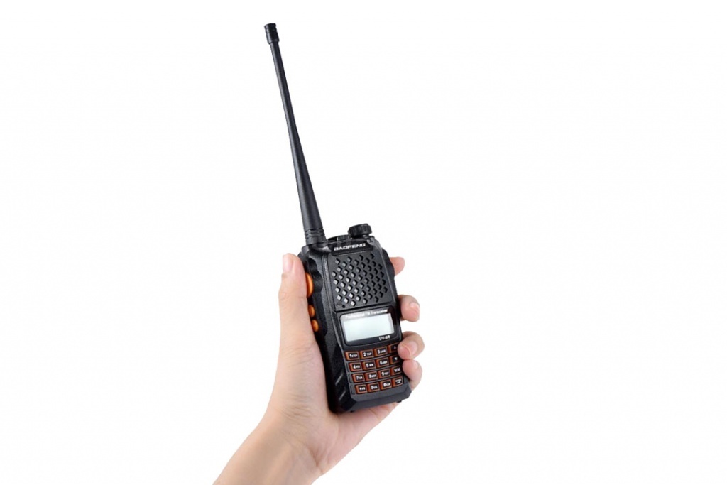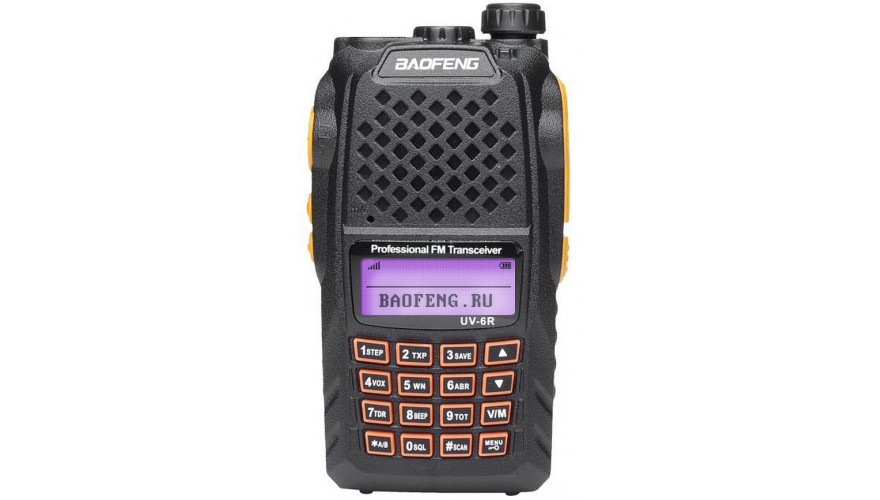 BAOFENG UV-6R – профессиональная рация с радиусом действия до 10 километров в зависимости от ландшафта местности. Устройство может применяться для организации связи в различных сферах, так как обладает компактными габаритами, малым весом и большим набором дополнительных функций. Приём и передача сигнала может производиться в двух частотных диапазонах: 136-174 МГц и 400-520 МГц. Функция сканирования позволит быстро найти свободный канал для связи.