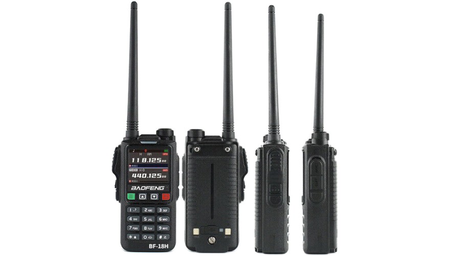 BAOFENG BF-18H 5W – рация мощностью до 5 Вт, цветным TFT экраном 1.77" и аккумулятором ёмкостью 1800 мАч. У рации есть все стандартные функции: управление голосом, таймер на передачу, аналоговые и цифровые субтоны, сканирование эфира, DTMF, FM-радиоприемник и светодиодный фонарик. Аналоговый скремблер защищает переговоры от прослушивания третьими лицами. Частотомер отображает на экране настройки канала передающей рядом рации.