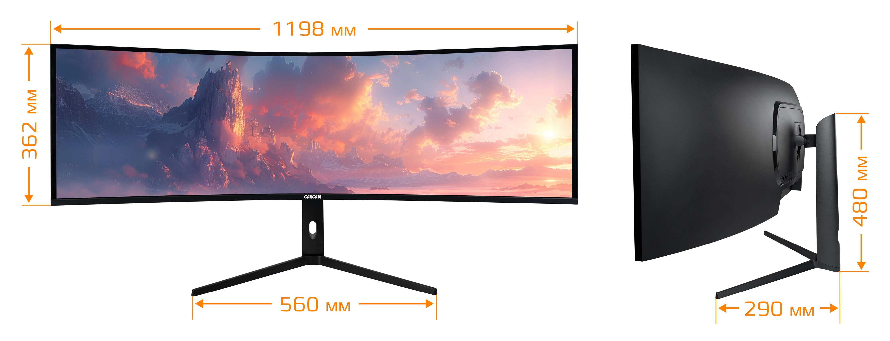 CARCAM 49'' Ultrawide Curved 5K Monitor 165Hz (CC49Z1PR) — это современный сверхширокоформатный монитор с регулировкой по высоте, наклону и повороту, разработанный для пользователей, ценящих производительность и комфорт. Эта модель сочетает в себе передовые технологии отображения изображения, эргономичный дизайн и широкие возможности подключения, что делает её универсальным решением для работы, развлечений и игр.