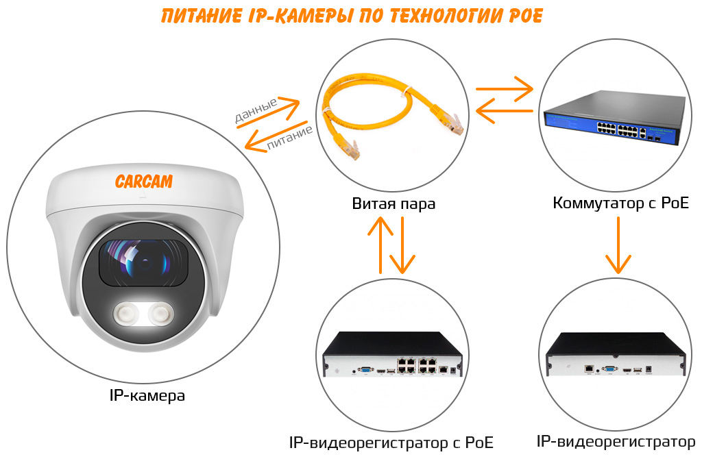Функция POE позволяет осуществлять электропитание камеры через витую пару. Данные и электричество будут передаваться через один кабель, что многократно сократит затраты на проводку.