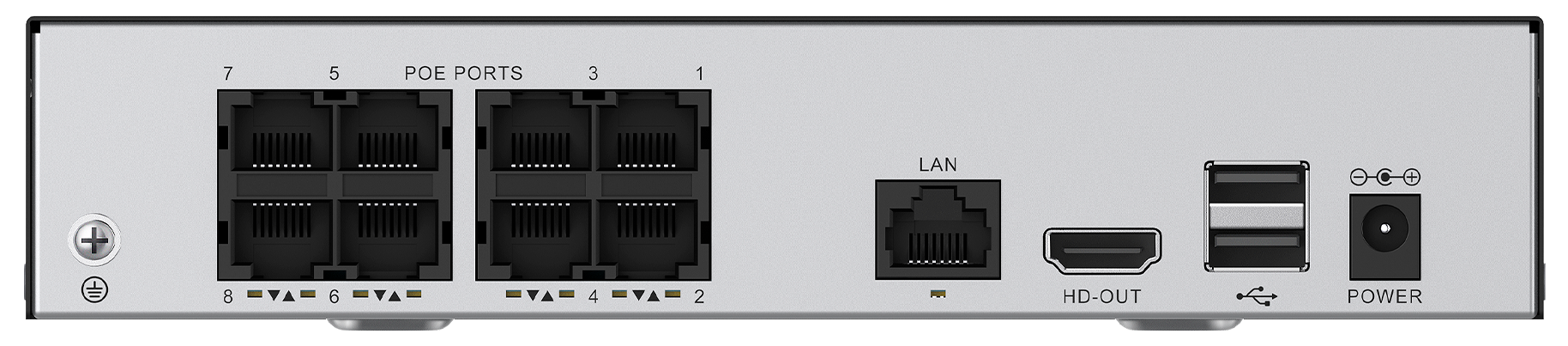 Видеорегистратор оснащен 8 портами PoE. Благодаря этому вы сможете подключить к устройству камеры видеонаблюдения с поддержкой функции фантомного питания. Данные и электроэнергия будут передаваться через один кабель, что многократно сократит затраты на электропроводку.