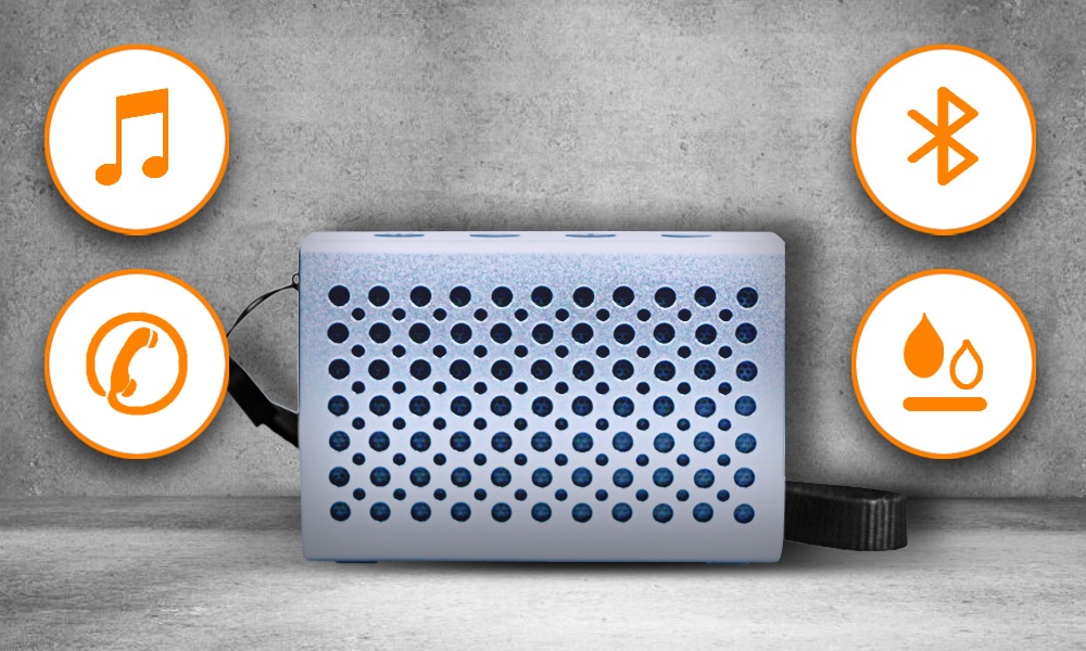 CARCAM AM-109B – портативная влагозащищенная Bluetooth колонка с новейшей системой обработки сигнала и встроенным микрофоном.
