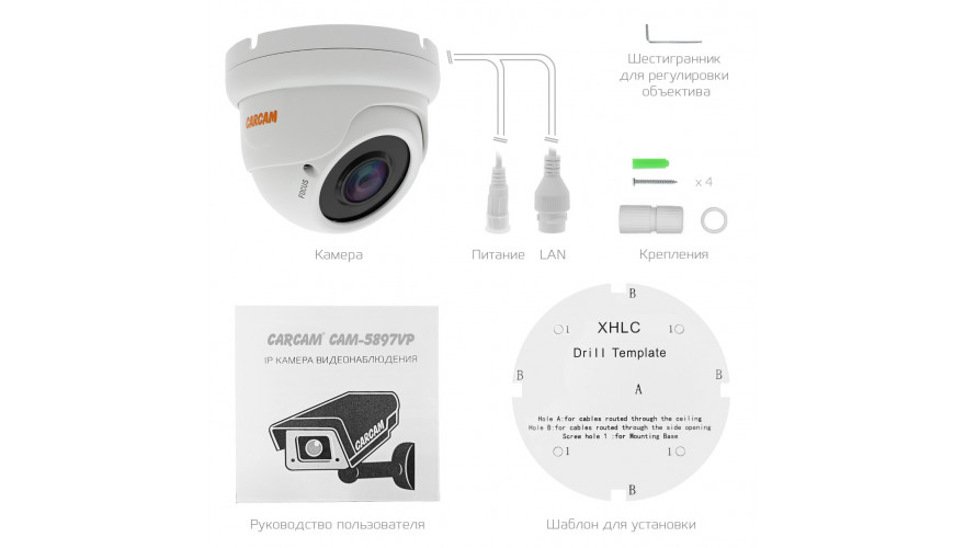 CARCAM CAM-5897VP – купольная IP камера, оснащенная матрицей SONY IMX335 и поддержкой фантомного питания. Устройство ведет съемку в разрешении 2592x1944p, что позволяет отчетливо рассмотреть на видео все детали происходящего. Для качественной съемки в темное время суток или отсутствии освещения, камера оснащена ИК-подсветкой с дальностью 30 метров. Металлический корпус камеры обладает степенью защиты IP67 и позволяет установить камеру как внутри, так и снаружи помещения.
