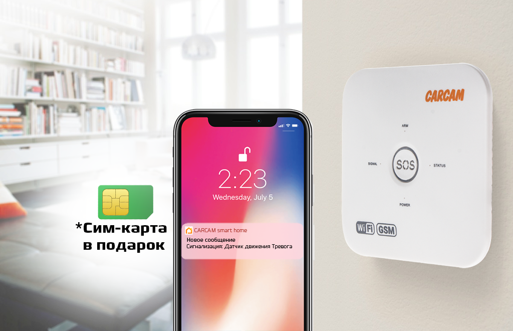 Благодаря модулю GSM вы сможете получать тревожные уведомления, а также управлять сигнализацией посредством