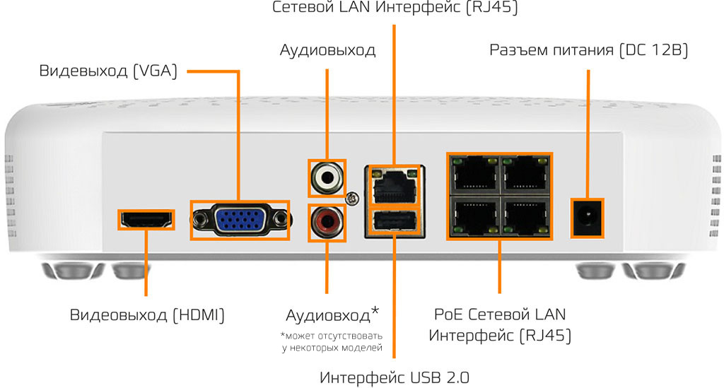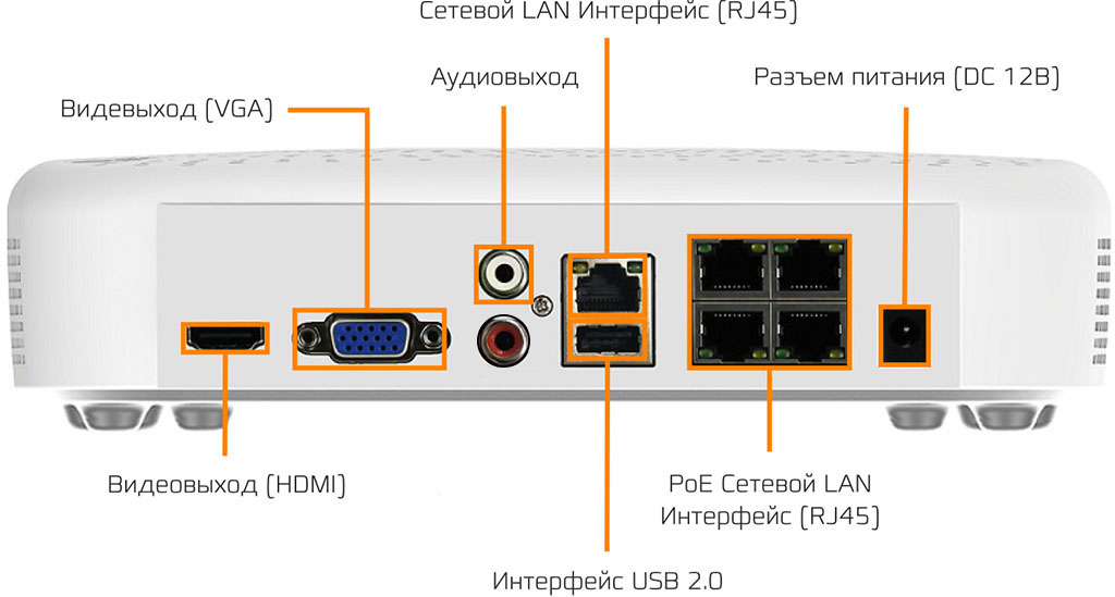 Видеорегистратор оснащен 4 PoE-портами. Благодаря этому, вы сможете подключить к устройству камеры видеонаблюдения с поддержкой функции фантомного питания. Данные и электроэнергия будут передаваться через один кабель, что многократно сократит затраты на проводку.