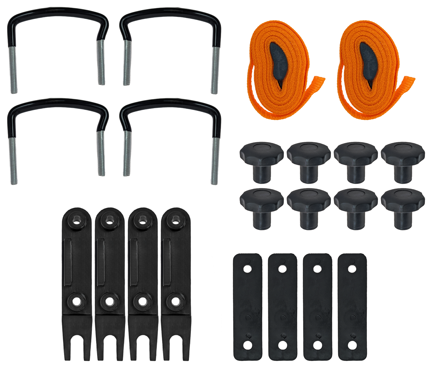 U-образное крепление для поперечных дуг 4 шт., Ремни для груза 2 шт., Ключи от замка 2 шт. |