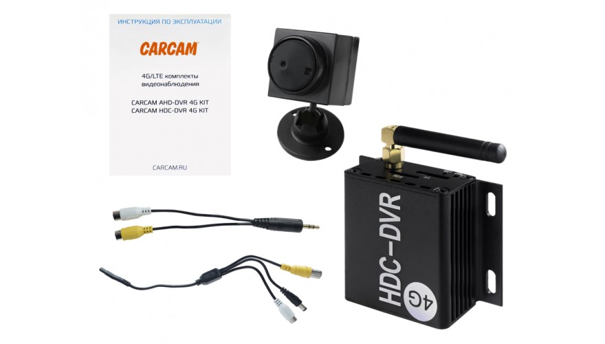 CARCAM HDC-DVR 4G KIT 1 - стационарный комплект видеонаблюдения, который состоит из компактного видеорегистратора и миниатюрной Full HD камеры. Для хранения видео устройство оснащено слотом для карт памяти microSD объемом до 256 гигабайт. Модуль 4G обеспечивает удалённый просмотр видео с компьютера или смартфона на базе операционных систем Android и iOS. Дополнительно регистратор поддерживает подключение монитора. Весь комплект обладает очень компактными габаритами и может применяться для видеонаблюдения в помещениях с небольшой площадью, при этом не привлекая к себе лишнего внимания. Модель обладает прочным корпусом, что позволяет использовать устройство в условиях с высоким риском повреждения. Видеорегистратор также можно установить на вертикальную поверхность или под стол.