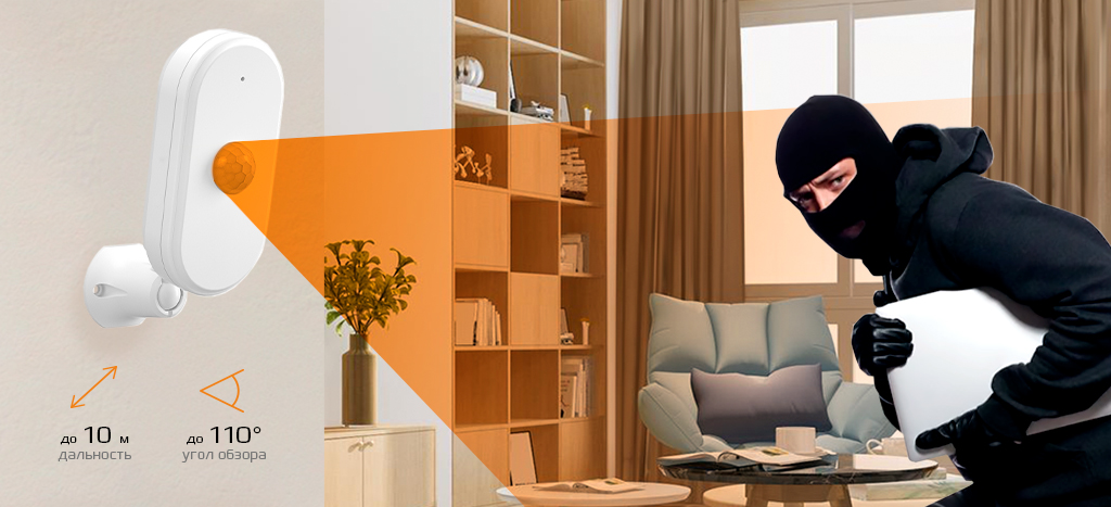 CARCAM Wireless Motion Sensor 809W – беспроводной PIR-датчик движения с углом обнаружения 110° на расстоянии до 10 м. Работает от 2 батареек типа ААА. Датчик можно повернуть на 360° по горизонтали и на 90° по вертикали. Он может быть установлен на столе, потолке или стене. PIR-датчик подключается к контрольной панели и управляется с нее. Он работает на стандартной частоте 433 МГц и совместим с с охранными системами других производителей.