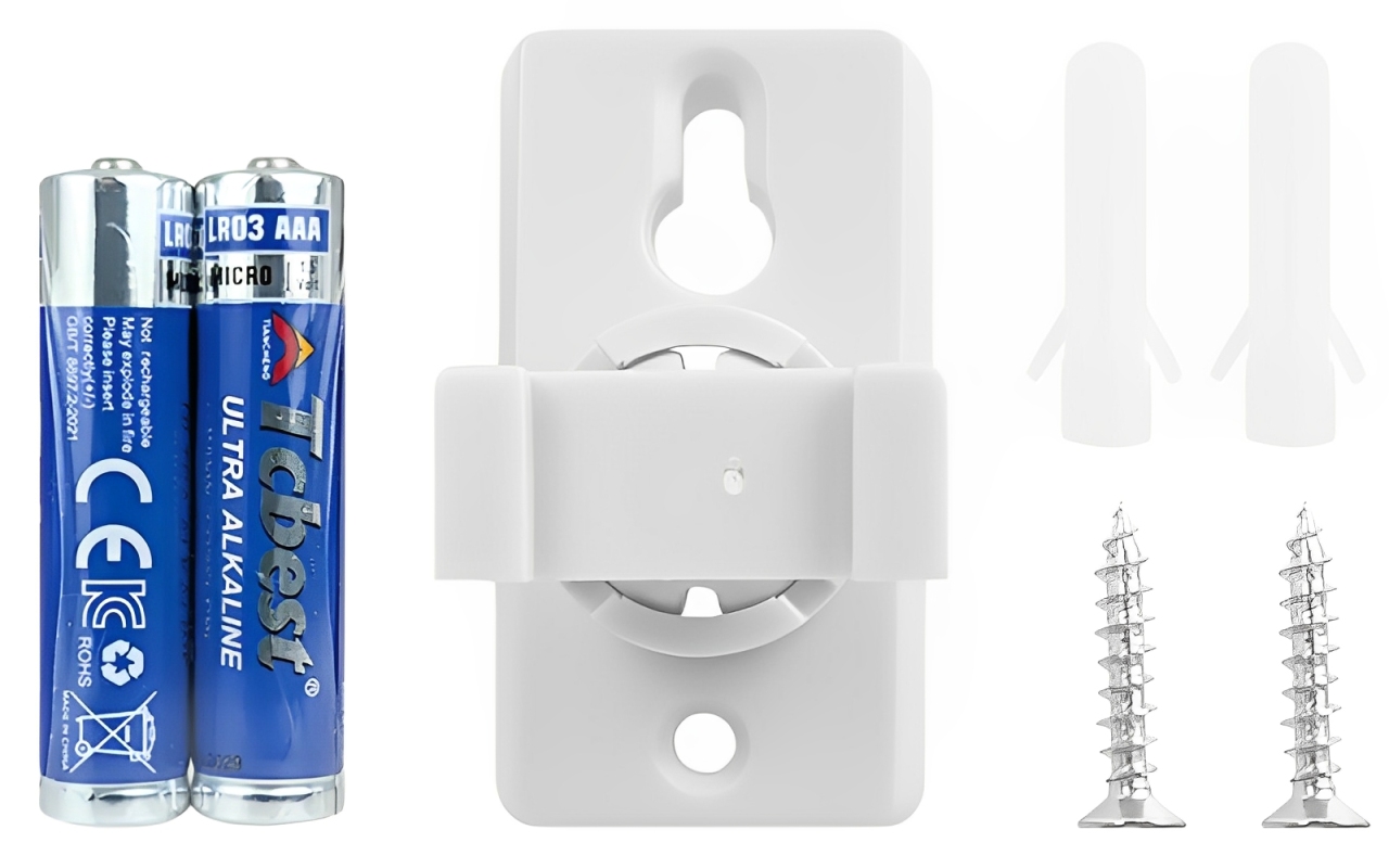 Датчик движения, Подставка, Комплект для монтажа, Батареи AAА 2 шт, Руководство пользователя |