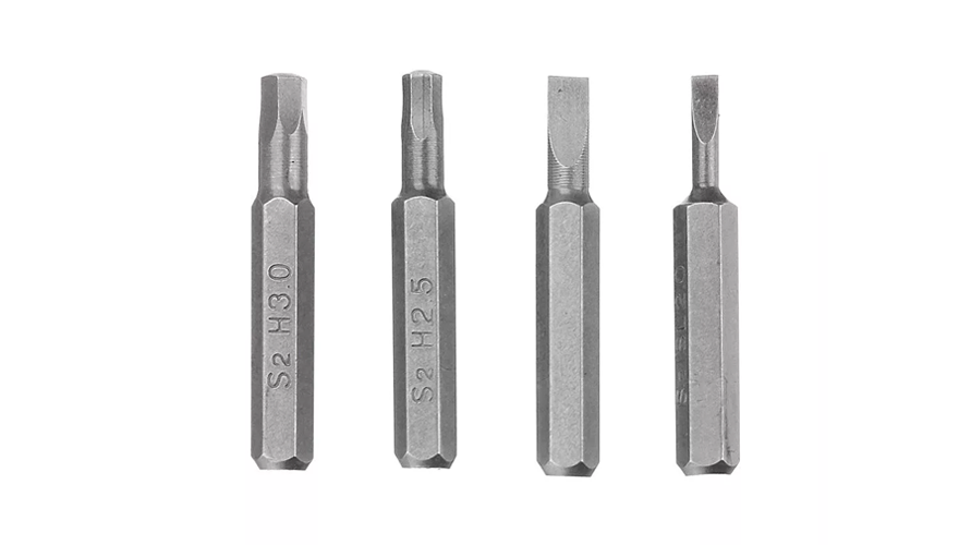 20 сменных бит: PH000/ PH0/ PH2; SL1.0/ SL2.0/ SL3.0; T5/ T6/ T8; P2/ P5/ P6; H2.5/ H3; SQ0/ 3.0/ Y2.5/ U3.0; Y0.6/ 0.8 |