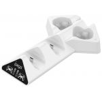 iPEGA PG-P5011 – зарядная станция для 2-х геймпадов Sony DualSense (PS5) и контроллеров PS Move белого цвета. Практичный и удобный аксессуар, с помощью которого возможно подзаряжать одновременно 4 аксессуара. Производитель не комплектует отдельно реализуемые DualSense и PS Move аксессуарами для подзарядки, поэтому зарядная станция становится оптимальным выбором после приобретения дополнительных контроллеров управления. Док-станция оснащена светящимся индикатором заряда на каждое устройство, которые вы можете заряжать как одновременно, так и по одному. Кроме того, у станции есть светодиодная индикация на передней части устройства, которая помогает определить статус зарядки: красный цвет – заряжается, синий – все устройства полностью заряжены.