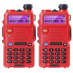 Комплект раций Baofeng UV-5R – RED/2 - комплект включает в себя 2 компактные рации Baofeng UV-5R красного цвета с радиусом действия до 10 километров на открытой местности. Рации одинаково хорошо подходят как для работы, так и для активного отдыха или туризма. Благодаря компактным габаритам и весу всего в 250 грамм рации максимально удобны и практичны в эксплуатации.