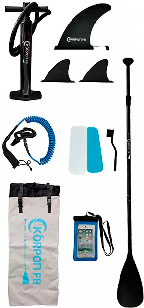 KORPON FB Inflatable SUP Board 320*84*15 (KP01B) – это устойчивый и яркий сапборд, отличный выбор для любителей активного отдыха на воде. Наличие трех плавников увеличивает устойчивость и позволяет использовать доску на мелководье, что подходит для занятия йогой. Сапборд изготовлен из высокопрочного ПВХ, выдерживает вес райдера до 150 кг. В основной части есть эластичная веревка для крепления личных вещей. Сапборд имеет шероховатую антискользящую поверхность, а также снабжен страховочным тросом (лишем), один конец которого застегивается на лодыжке, второй крепится к D-образному кольцу на доске. В комплект к сапборду входят: ручной насос высокого давления с манометром, трехсекционное разборное алюминиевое весло, три съемных плавника, страховочный лиш, рюкзак-сумка для переноски и ремкомплект.