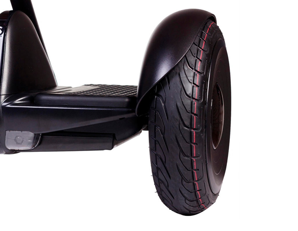 Бескамерные колеса диметром 10.5’’ с противоскользящим протектором обеспечивают наилучшее сцепление с дорогой и максимальную устойчивость гироскутера. Также это обеспечивает комфортную езду по скользким и неровным покрытиям.