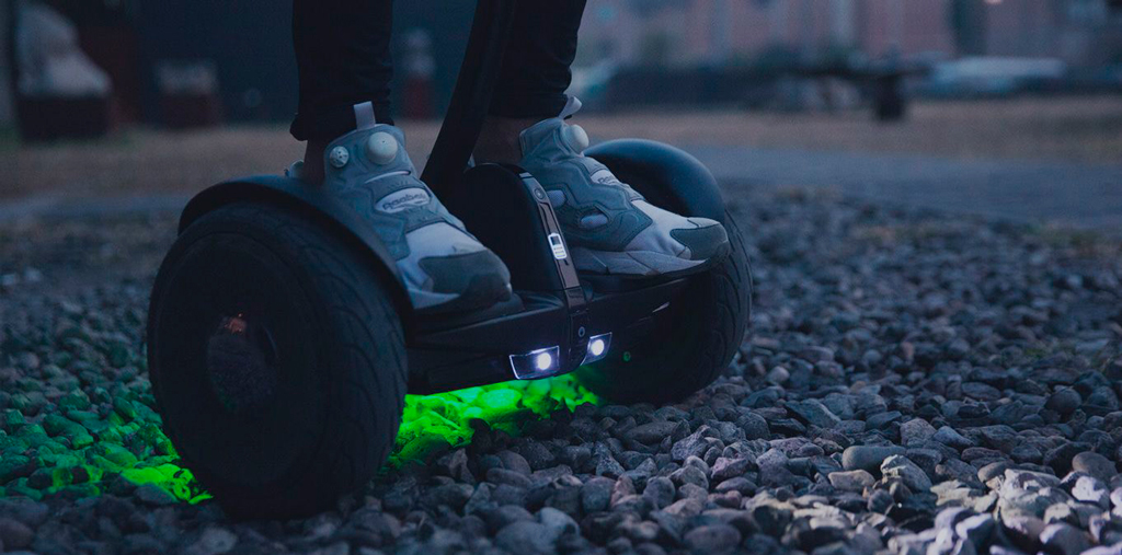 Сегвей оснащен двумя электродвигателями суммарной мощностью 700 Вт, которые позволяют развивать скорость до 16 километров в час.