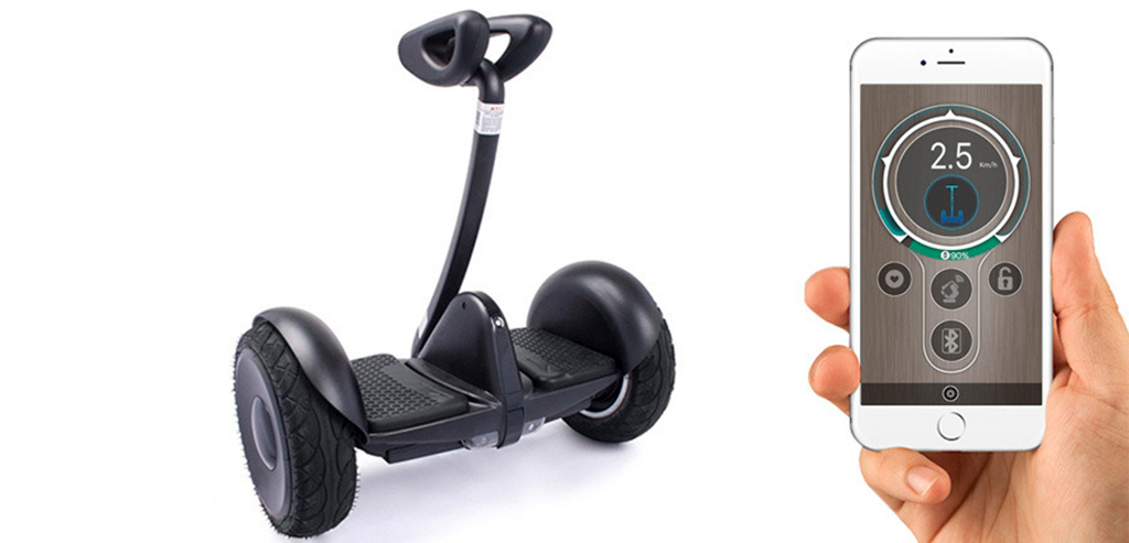 Специальное приложение «MiniROBOT» для Аndroid и iOS, позволит вам дистанционно управлять сегвеем с помощью вашего смартфона. Также благодаря приложению, вы сможете просматривать всю информацию о скорости движения, заряде аккумулятора и многом другом.
