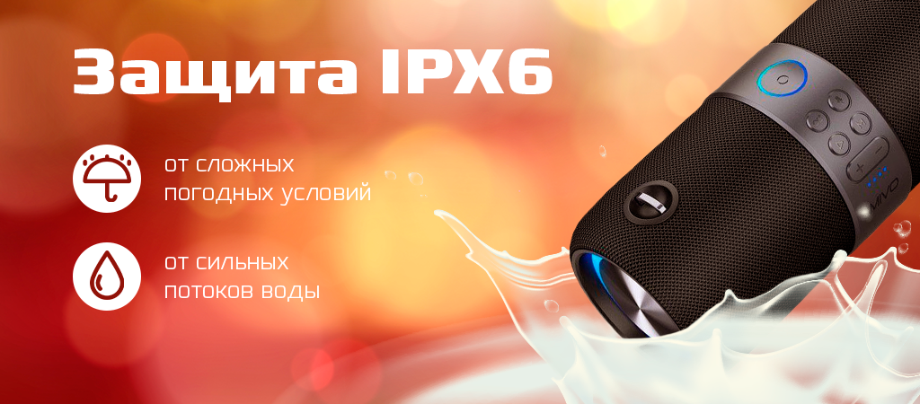 Mivo M11 PRO имеет защиту уровня IPx6, то есть способна выдержать направленные на нее струи воды — она не подведет и поддержит веселой музыкой даже в самых сложных погодных условиях.
