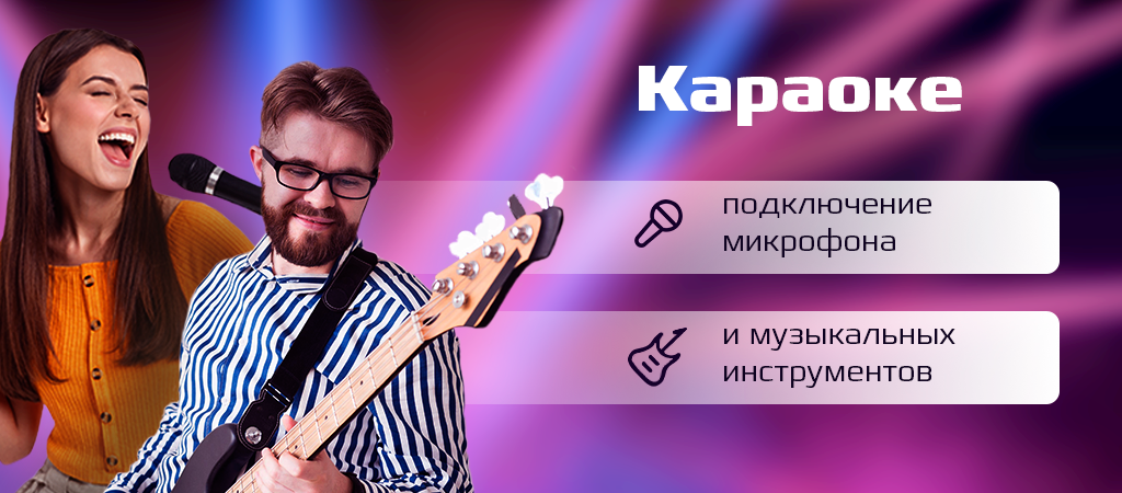 Данная модель дает возможность подключения к колонке микрофона, а также какого-либо музыкального инструмента. Для караоке достаточно подключить к колонке телефон, планшет или телевизор с интернетом и найти на YouTube любимую песню.