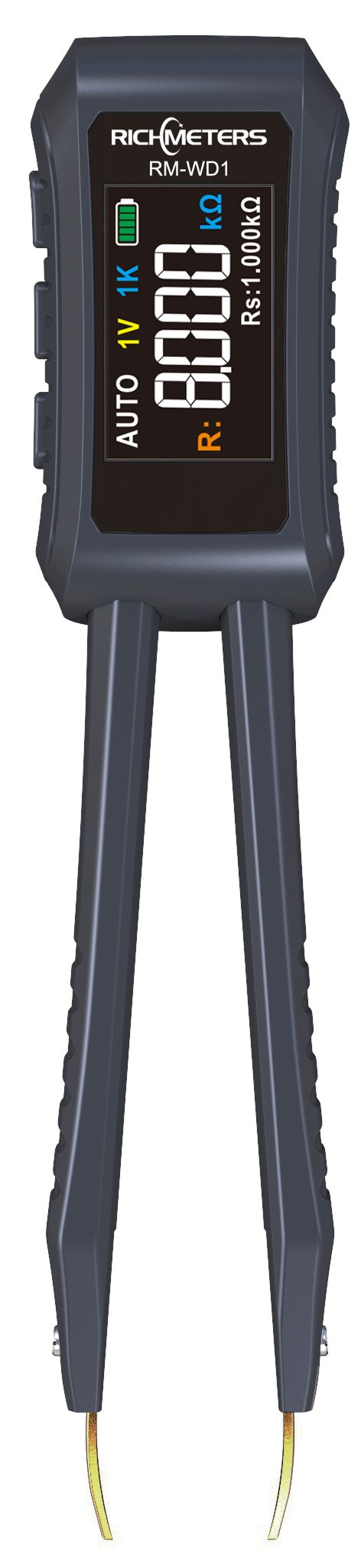 RichMeters RM-MD1 - SMD тестер с ЖК-дисплеем, он может измерять емкость, сопротивление, индуктивность, проверять диоды и прозванивать цепи. Пинцет автоматически определяет тип компонента и необходимый диапазон измерения его параметров. На дисплее отображается основной и два дополнительных параметра. Возможна пользовательская калибровка. У мультиметра есть память предыдущих измерений и автоматическое выключение. Пинцет заряжается по Type-C, емкость аккумулятора - 400 мАч.