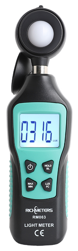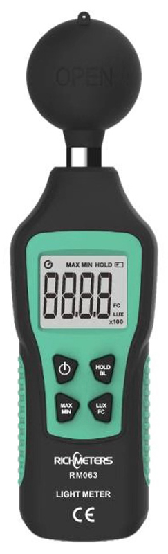 RichMeters RM063 – это прибор для измерения уровня освещенности, создаваемого различными источниками света. У данного люксметра стабильное, безопасное и точное измерение с широким диапазоном: 0-200K люкс и 0Fc~20KFc, также есть возможность переключения единиц измерения: люкс или FC. Удобная работа обеспечивается благодаря функциям MAX/MIN/Data Hold и высокой точности. ЖК-дисплей с подсветкой для простой в эксплуатации в темноте. Индикация низкого заряда батареи и автоматическое отключение, благодаря чему обеспечивается энергосбережение. Изготовлен из надежного АБС-пластика. Спектральный диапазон: 320-730 нм.