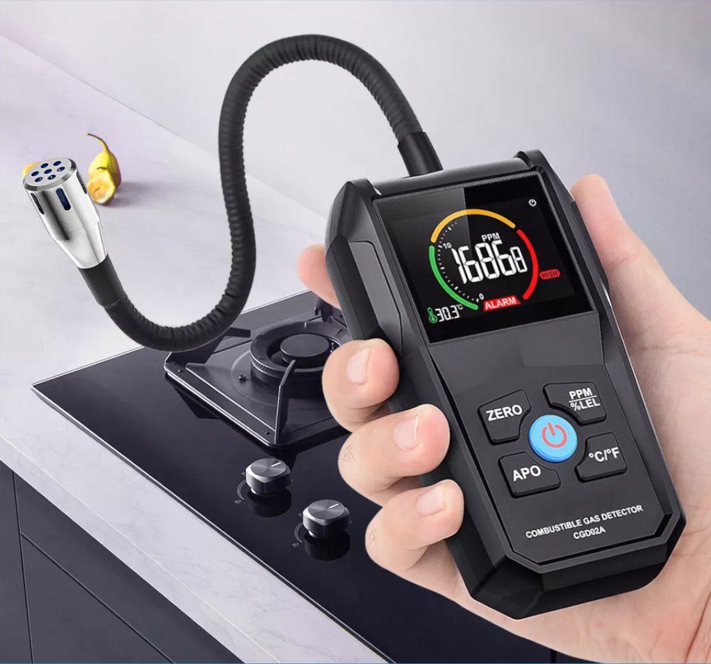 RichMeters RM069 – детектор горючих газов. Обнаруживает природный газ, угольный газ, сжиженный нефтяной газ с погрешностью 5%. Питание осуществляется от трёх батареек типа ААА. Автоматический диапазон измерения и калибровка через 30 секунд после включения. Автоматическое отключение через 10 минут с целью экономии энергии. Диапазон рабочих температур от 0 до 50 градусов. Прочный корпус обладает компактными и удобными в транспортировке габаритами.