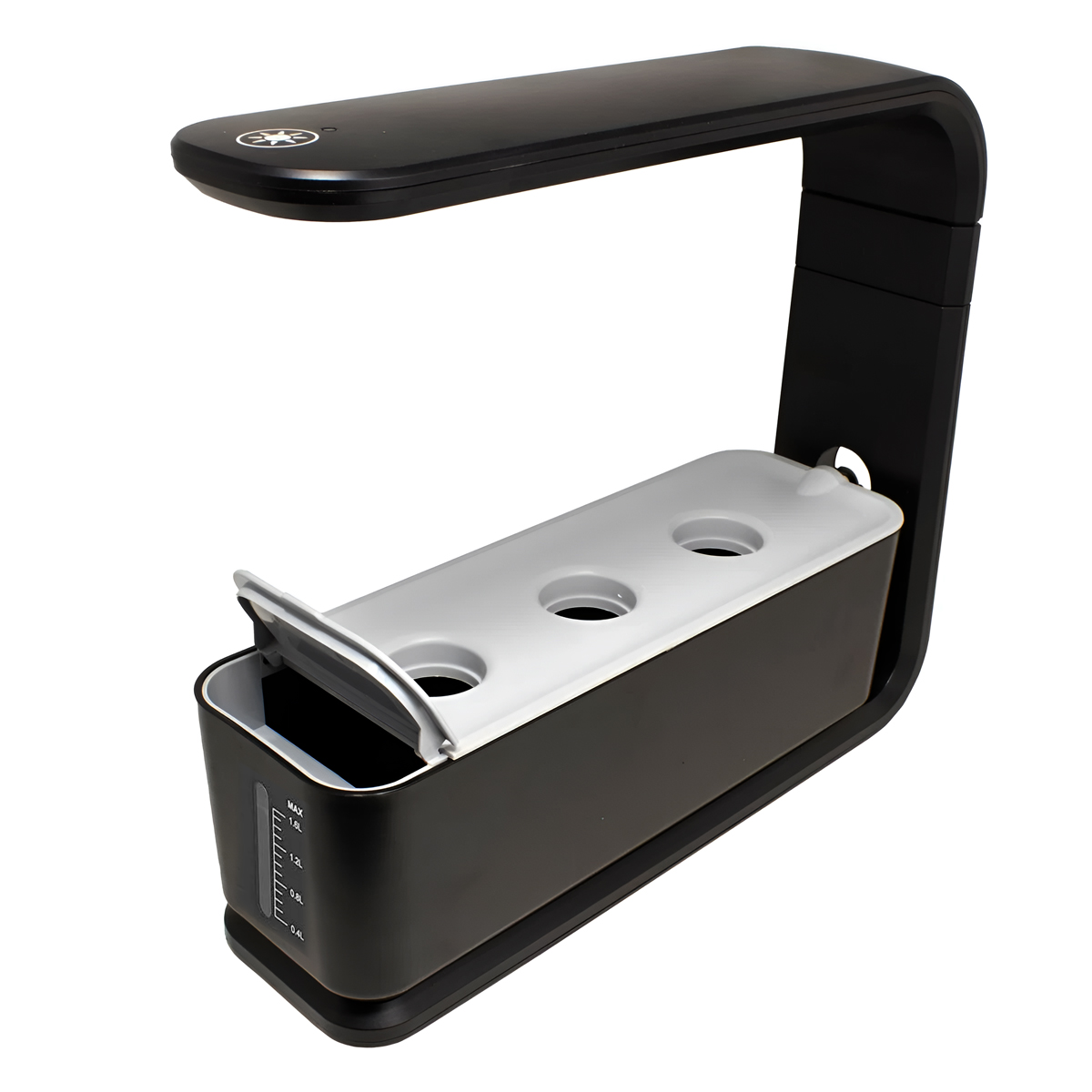 SUNTEK Smart Farm 3 Plant Cells (SNSF003) – это современная домашняя гидропонная установка, которая позволяет круглый год выращивать свежую зелень, овощи, ягоды и цветы прямо у вас дома, без использования земли и сложного ухода за растениями. Гидропоника — это технология выращивания растений без грунта, где все необходимые питательные вещества для растений поступают вместе с водой. Достаточно посеять семена в торфяные конусы, установить их в посадочные ячейки, добавить воду и удобрения через специальное отверстие в установке, а система позаботится обо всём остальном. Емкость резервуара с водой 1,6 литра, оснащена визуальным индикатором уровня, который подскажет, когда ее нужно долить. Автоматический насос обеспечивает циркуляцию воды по циклу: 5 минут работы и 25 минут паузы, что гарантирует оптимальное увлажнение корней. В установке используется лампа (60 светодиодов), с режимом работы 14 часов света, 10 часов темноты, светодиоды полного спектра эффективны как для рассады, так и для взрослых растений, безопасны для людей и домашних животных. Высота лампы регулируется с 15 до 23см, что позволяет адаптировать освещение под разные стадии роста. Вы можете выращивать разнообразные культуры: зелень, пряные травы, помидоры черри, перец, ягоды и многое другое. В комплект входят гидропонная установка с насосом и подсветкой, адаптер питания, 3 торфяных конуса, 3 посадочных формы, 3 защитных колпачка, 2 флакона с удобрением, инструкция.