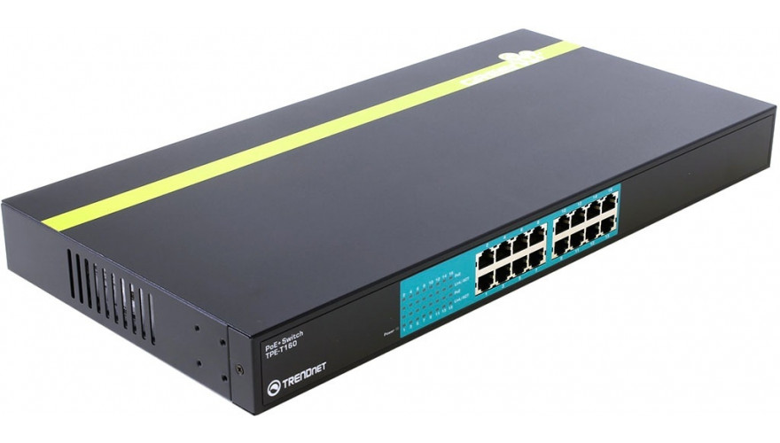 TRENDnet TPE-T160 – портативный 16-портовый POE-коммутатор, позволяющий одновременно передавать данные и электропитание через кабель Ethernet. Каждый порт способен обеспечить электропитанием устройства с поддержкой PoE мощностью до 30 Вт. Технология GREENnet дает возможность уменьшить расход электроэнергии до 75%, когда коммутатор находится в режиме ожидания. Также устройство поддерживает функцию Plug and Play, что исключает необходимость дополнительной настройки.