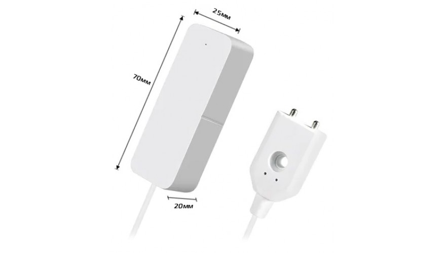 TUYA Wi-Fi Датчик протечки воды 898WT - беспроводной датчик протечки воды с выносным сенсором. Длина провода составляет 0.9 метра. . Работает по Wi-Fi 2.4ГГц с мобильным приложением Smart Life (Tuya Smart). В случае протечки сигнализация отправит уведомление об опасности на смартфон. Вы также можете предоставить доступ к контролю другим членам семьи через настройки приложения. Крепится с помощью двухстороннего скотча. Работает от 2 батареек типа ААА.