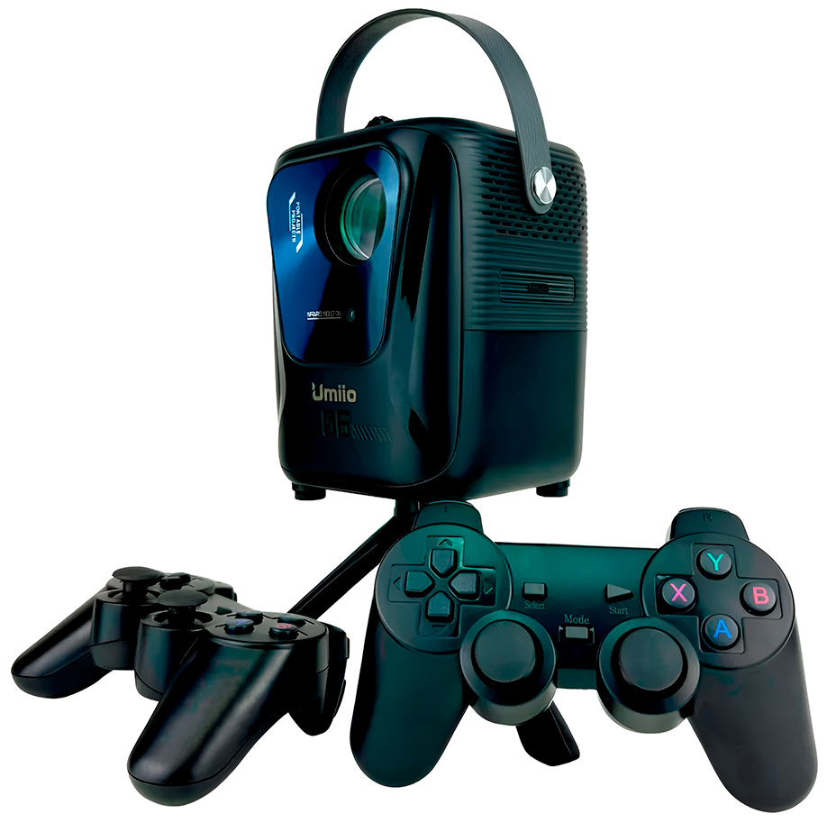 Umiio Player Projector Q4 Pro Black – игровой мини-проектор с разрешением 1920x1080 Full HD. Для подключения к различным устройствам предусмотрены видеовыход HDMI, порт USB, считыватель карты памяти и аудио разъем Jack 3.5 мм, благодаря чему его можно подключить к ноутбуку, компьютеру, Playstation 5 или 4. Проектор фокусируется на расстоянии 1-5 м, имеет диагональ проекции 50-300 см и яркость 7000. Работает под управлением встроенной системы Android 12.0 и адаптируется к большему количеству прикладного программного обеспечения. Система приема Wi-Fi 5G,использует передовые светодиодные технологии и технологию равномерного освещения, чтобы сделать края проекции ярче. Карта памяти с играми уже установлена. Комплектация включает сам проектор, два геймпада, штатив, пульт, HDMI-кабель и инструкцию.