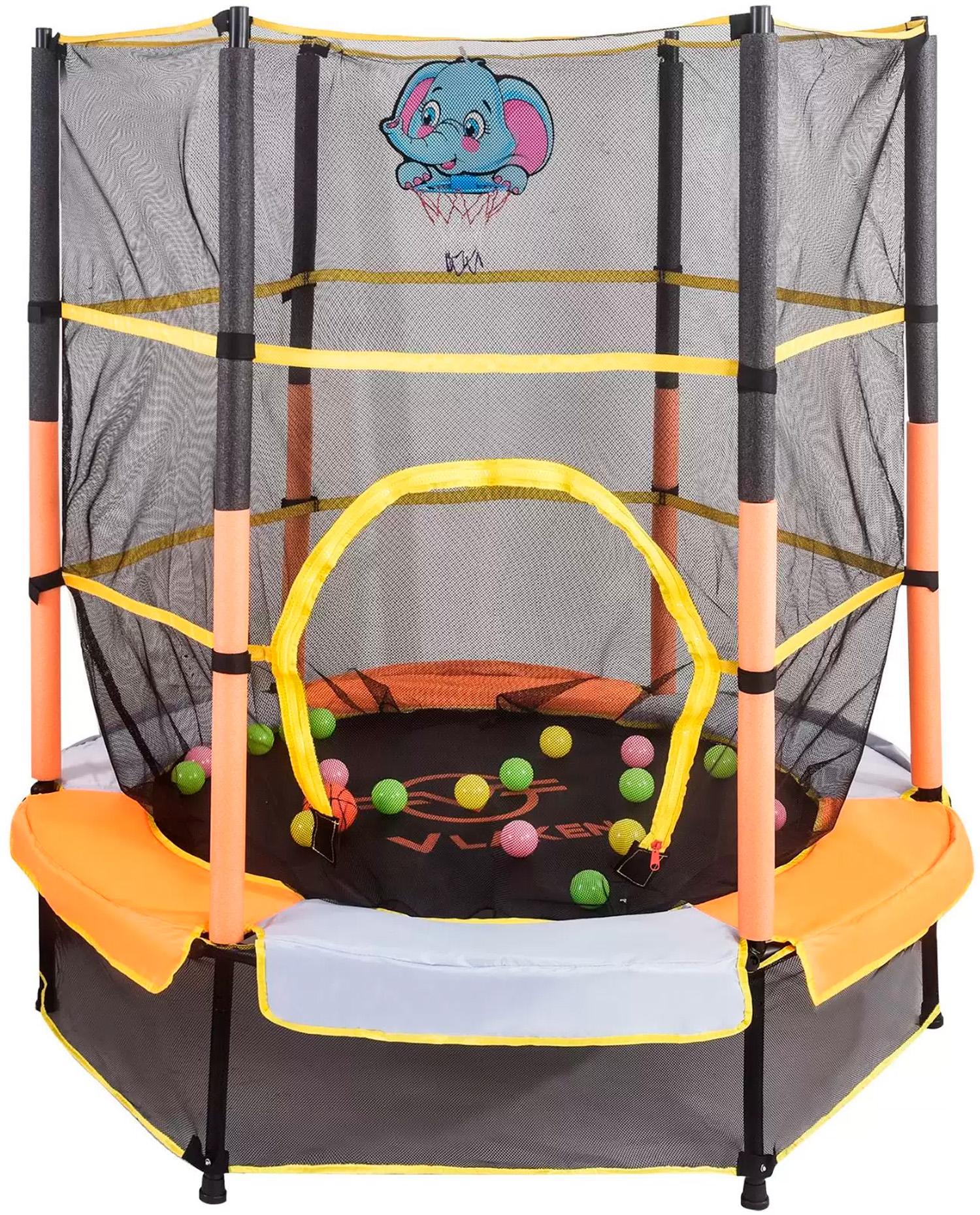 Vlaken JL-004 – это детский игровой батут, который подходит для уличного и домашнего использования и выдерживает нагрузку до 100 кг. Подходит для использования в спортивных целях. Способствует развитию координации движений, улучшению баланса и силы мышц. Изготовлен из прочных материалов, специально разработанных для длительного использования на открытом воздухе. Каркас из оцинкованной стали обеспечивает стабильность и прочность. Прыжковая поверхность выполнена из ПВХ (поливинилхлорида), а защитная сетка из нейлона. В комплекте с батутом идет 20 пластиковых шариков для игр. Высота защитной сетки — 126 см, общая высота батута — 162,5 см, 6 опорных стержней.