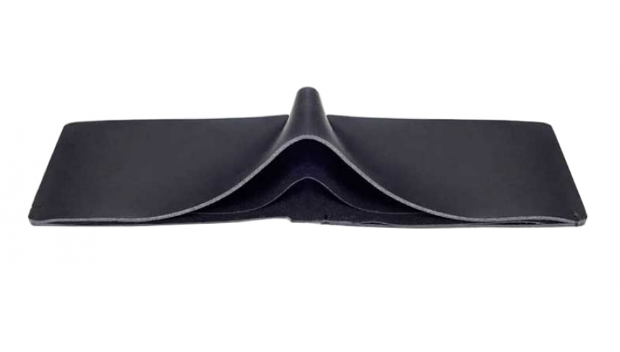 Кошелек изготовлен методом искусственной пайки, что позволило избежать лишних швов. Вкупе с прочной искусственной кожей это предотвращает попадание влаги внутрь. Для придания дополнительной прочности углы укреплены пластиковыми вставками.