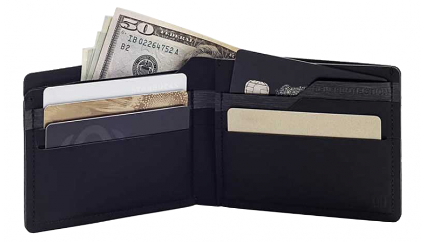 При создании кошелька использовалась специальная ткань, которая блокирует RFID-сигналы. Благодаря этому мошенники в общественных местах не смогут считать данные с вашей банковской карты и получить к ней доступ.