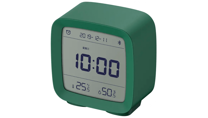 Xiaomi Bluetooth Alarm clock CGD1 Green — компактный многофункциональный будильник, который сделает ваши пробуждения максимально комфортными и приятными. Устройство поддерживает сохранение 16 будильников, на каждый из которых вы сможете задать индивидуальные мелодии и уровни громкости. Чтобы выключить будильник, достаточно слегка хлопнуть по верхней части корпуса устройства. Дополнительно будильник оснащен термометром и датчиком влажности, что позволяет постоянно контролировать микроклимат в вашей спальне. Вся необходимая информация отображается на большом экране с регулируемой подсветкой. Настройка времени, а также управление другими функциями устройства осуществляется через мобильное приложение Mi Home.