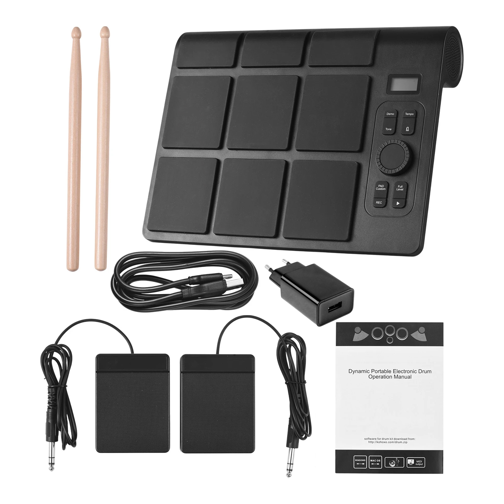 Xiaomi Dynamic Drum Pad ED02 – электронный драм-пад с чувствительностью к силе удара. Установка имеет встроенный динамик, а также поддерживает подключение наушников и колонок. Интеллектуальная подсветка обеспечивает визуальную обратную связь при ударе. Подключайте к компьютеру и используйте как MIDI-клавиатуру. Литий-ионный аккумулятор на 2000 мАч позволяет брать драм-пад с собой и играть удалённо от сети. Xiaomi Dynamic Drum Pad ED02 имеет встроенные функции: 10 демо-мелодий, 16 звуков барабанов, запись и воспроизведение ваших ритмов.