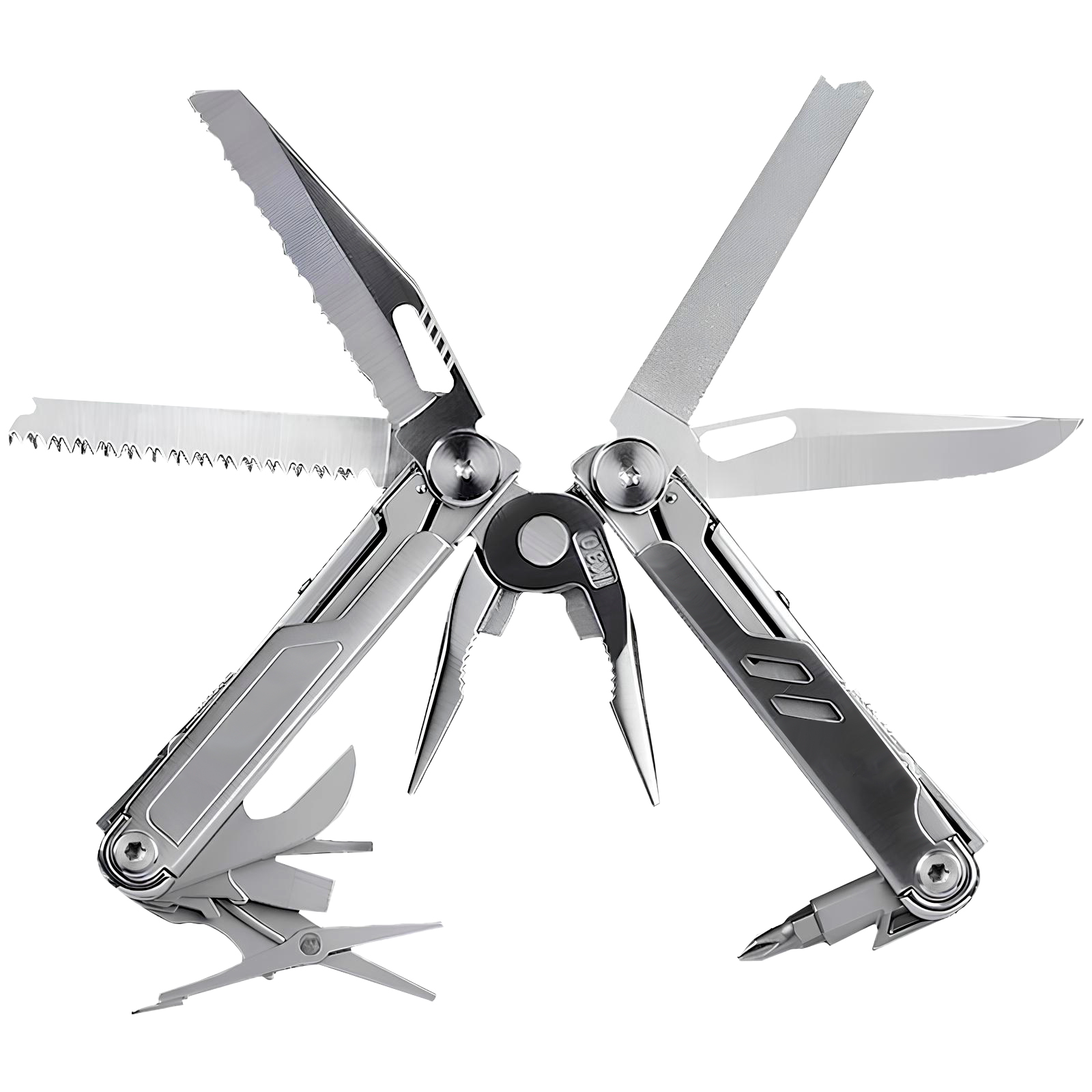 Для безопасности использования все инструменты снабжены фиксирующей защелкой. Рукоятки мультитула имеют специальную эргономичную форму, что способствует уверенному удержанию инструмента во время работы.