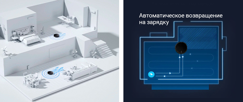 Пылесос оснащен гироскопом, который помогает ему планировать оптимальный маршрут, легко преодолевая препятствия. Вы можете указать пылесосу на конкретную область уборки или задать точку для старта. Датчики высоты не позволят пылесосу упасть со ступенек, сообщая об обрыве. Поскольку G2D ориентируется в пространстве благодаря инфракрасным датчикам, то для построения точной карты ему требуется около 3-х уборок. Пылесос со встроенным инфракрасным датчиком автоматически возвращается к док-станции для подзарядки, когда у него низкий заряд аккумулятора.