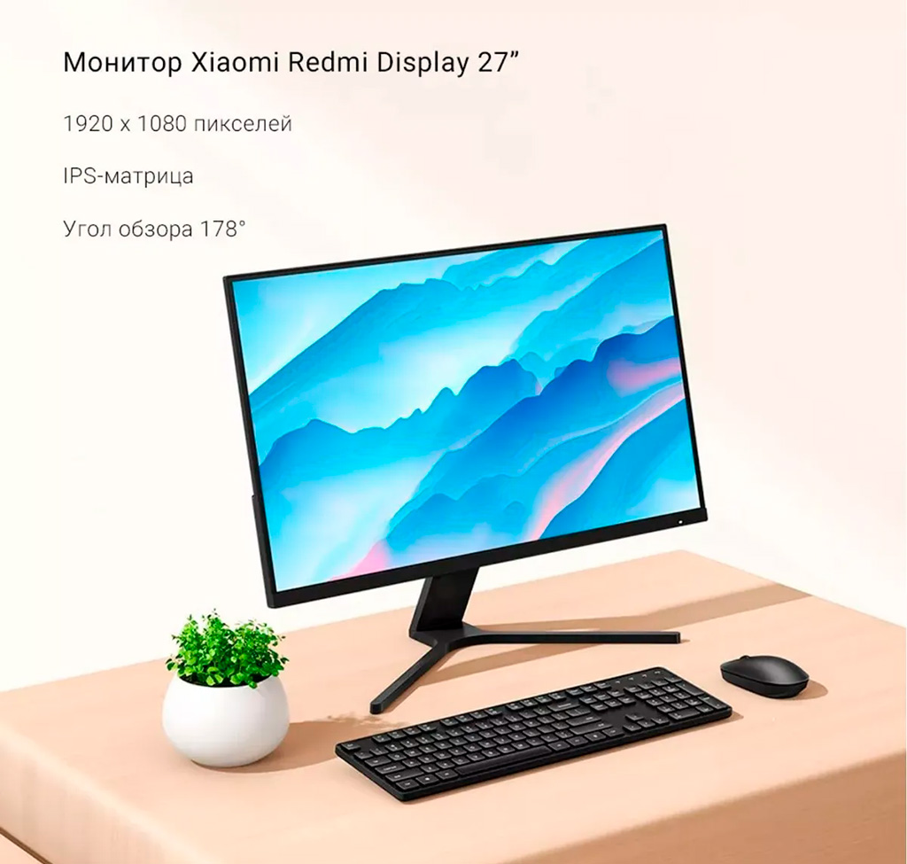 Redmi Display 27″ представляет собой современный монитор, демонстрирующий отличное качество картинки. Активное разрешение экрана Full HD, частота обновления 60 Гц, а яркость достигает 300 нит. Высокая скорость отклика 6 мс в сочетании с отличной контрастностью и углом обзора делает девайс подходящим не только для работы, но и для геймеров, которым в динамичных играх важна каждая миллисекунда.