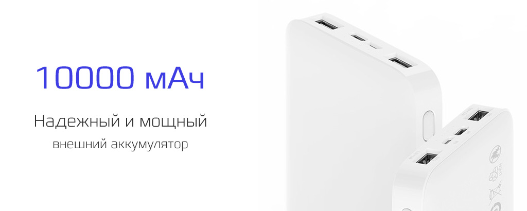 Емкость аккумулятора составляет 10000 мАч. Данной емкости достаточно, чтобы зарядить современный смартфон более до 3 раз. Вы сможете использовать устройство как резервный источник питания для ваших гаджетов в дальних поездках или перелётах.