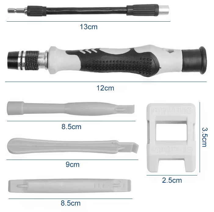 Xiaomi Screwdriver Set 117 in 1 (XMMTT117) Grey – набор отверток 117 в 1. В комплект входят 98 сменных бит и 19 аксессуаров для разборки, включая гибкий удлинитель для ремонта в труднодоступных местах. Все биты изготовлены из хромованадиевой стали CRV, устойчивы к истиранию, окислению и коррозии. Противоударный кейс оснащен углублениями для каждого компонента, благодаря чему мелкие детали не потеряются. Набор подойдет для разборки смартфонов, компьютеров, часов, очков, фотоаппаратов и других устройств.