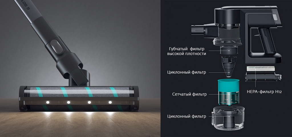 Xiaomi Viomi A9 Vacuum Wireless Handheld (V-HWVC12A) является универсальным и многофункциональным оборудованием. В его комплект входят насадки для очистки различных поверхностей: ламината, ковровых покрытий, мебели и т.п. Основная щетка оснащена встроенной подсветкой, которая автоматически включается при недостаточном уровне освещения. Вес пылесоса составляет всего 1,54 кг, поэтому его удобно и комфортно использовать.